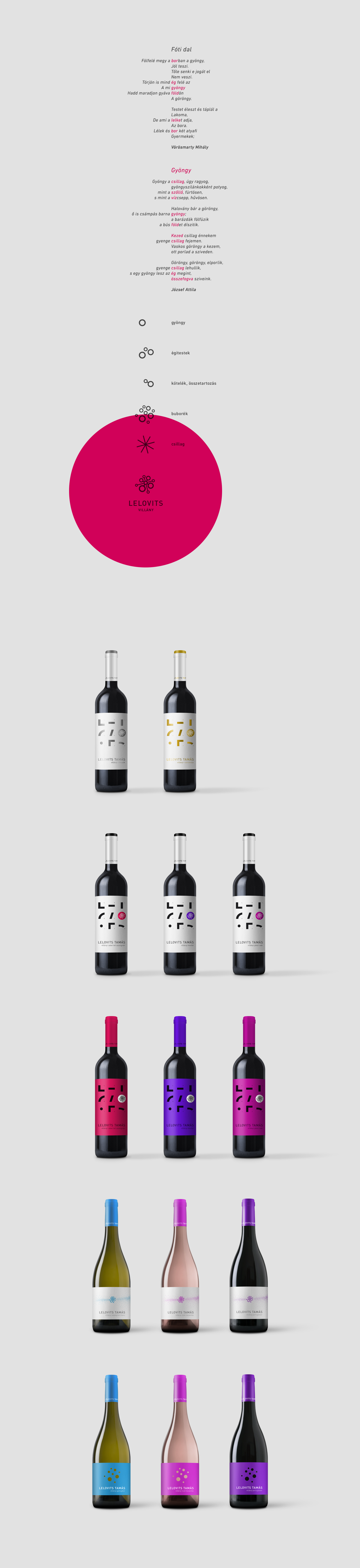 A villányi pincészet közép és prémium borcsalád mozaikos címketervein a Lelovits név adja ki a kompozíciót. Betűről-betűre lépkedve érdemes elidőzni, és ráérősen, időt hagyva végiggondolni, hogy a szőlőtől a borig tartó folyamat sem más, mint egy izgalmas mozaik: a föld, az időjárás, a termés, és nem utolsósorban maga a borász. Különféle elemekből, apró részletekből egyszer csak összeáll a kép.
